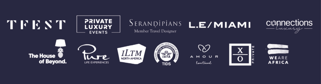 We are part of the exclusive communities of ILTM Cannes, L.E./Miami, The House of Beyond, Pure Life Experiences, Connections Luxury, Amour, Private Luxury, We Are Africa and T-Fest, to which only the best luxury travel agencies worldwide belong and to which access is by invitation only.